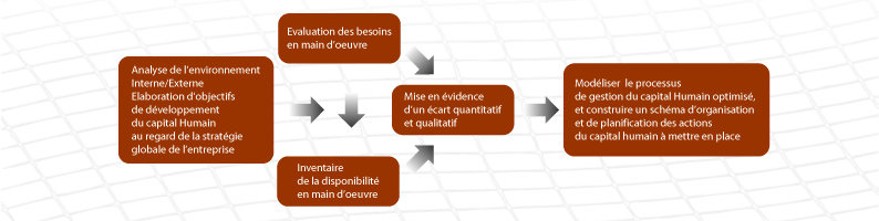 L’activité de réflexion stratégique globale que nous contribuons à réaliser, nous fournit les éléments permettant de modéliser le processus du capital Humain, ce qui rationalise et optimise la productivité de l’entreprise dans son ensemble.